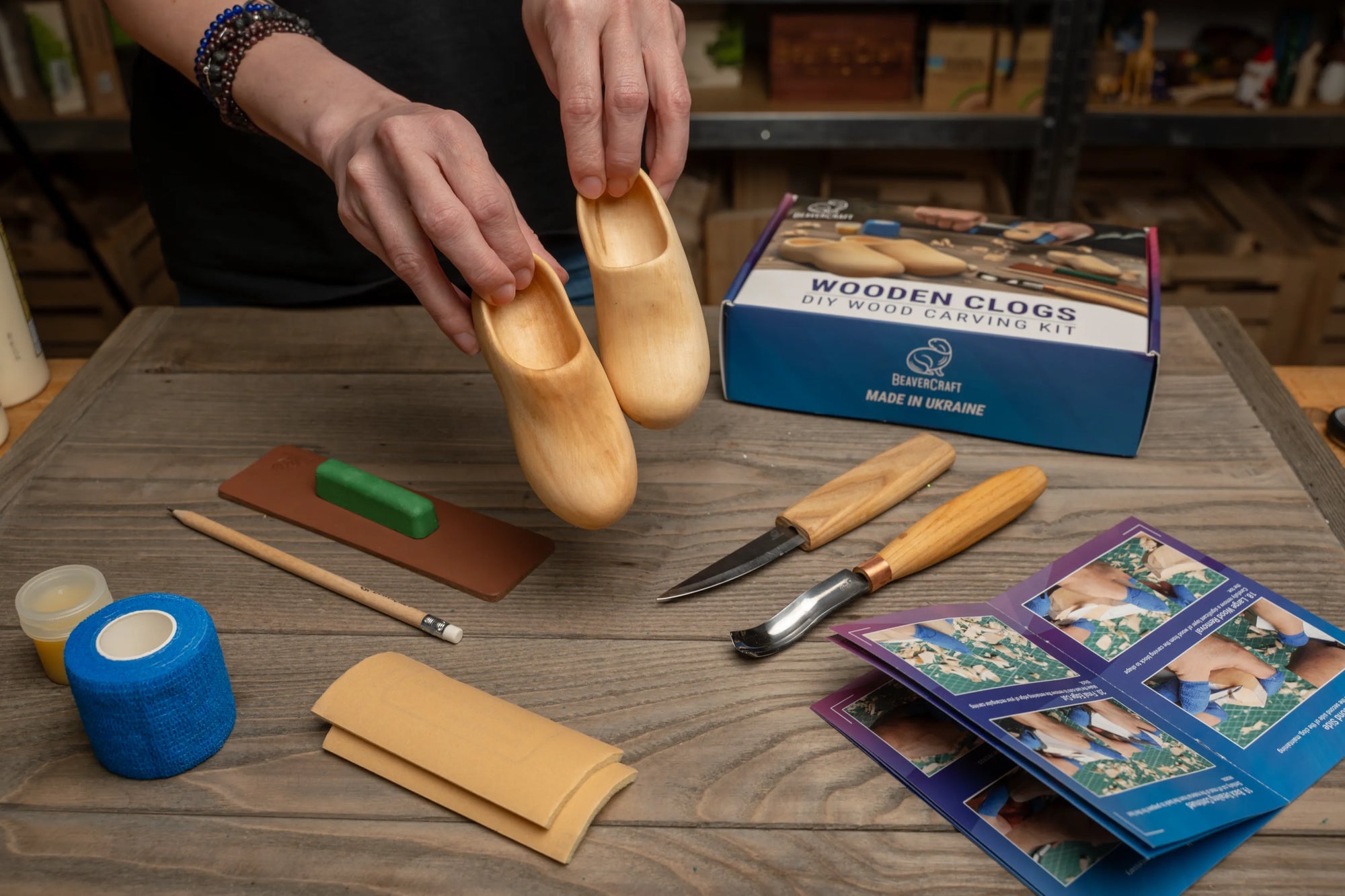 Tanto si eres principiante y quieres adentrarte en el mundo del tallado en madera como si eres un artesano experimentado en busca de un nuevo reto, el DIY10 Wooden Clogs Carving Kit es la elección perfecta.
