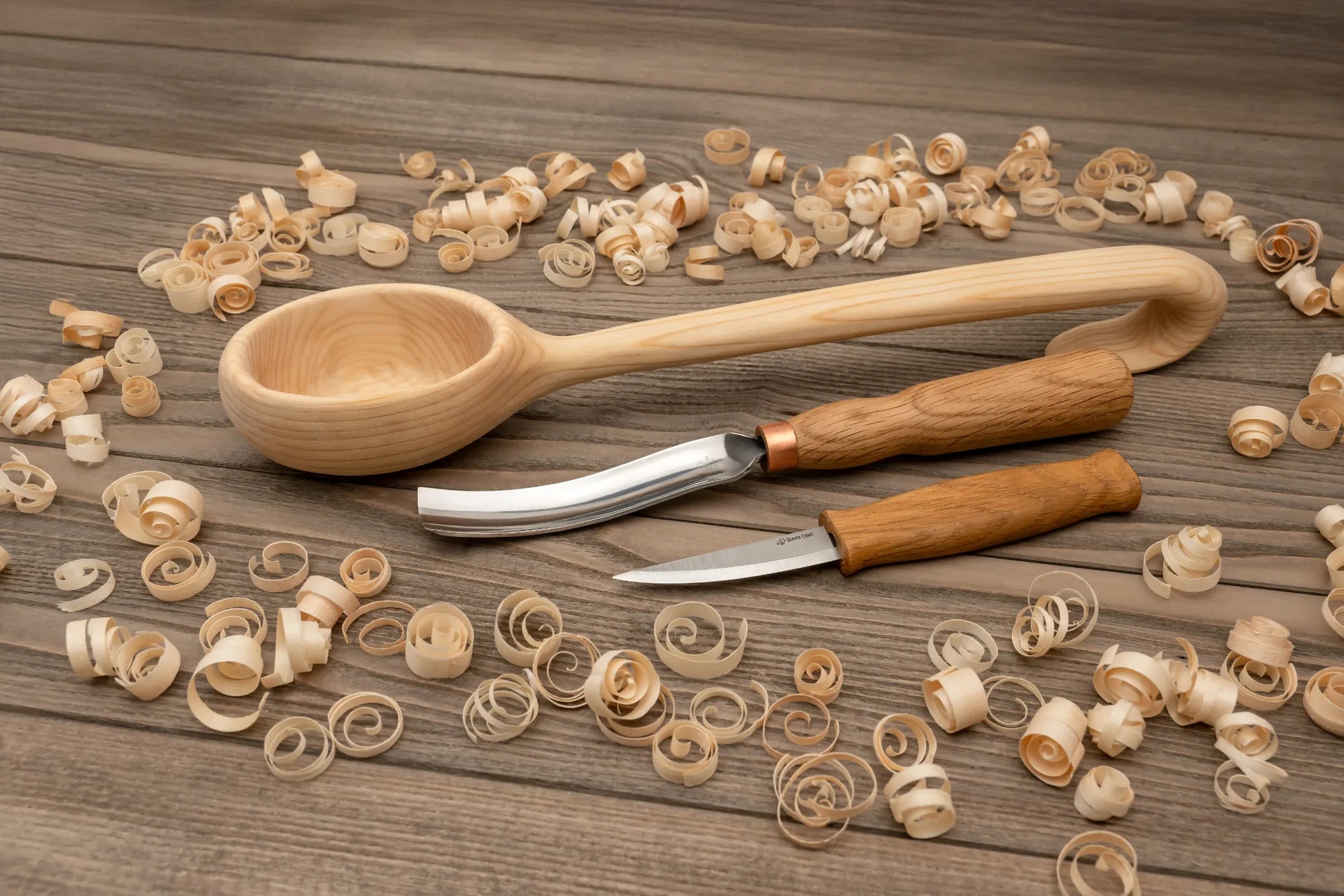 Il kit include una sagoma in legno di tiglio già pretagliata, così puoi concentrarti direttamente sull’intaglio senza dover modellare la forma grezza. Il coltello Sloyd è ideale per rifinire il manico e i dettagli, mentre la sgorbia lunga e curva consente di scavare comodamente la coppa del mestolo. Per mantenere gli strumenti sempre affilati e in perfette condizioni, sono inclusi una cinghia in cuoio per l’affilatura e una pasta lucidante. Troverai inoltre nastro protettivo antitaglio, diversi tipi di carta abrasiva e olio di lino per proteggere il pezzo finito.