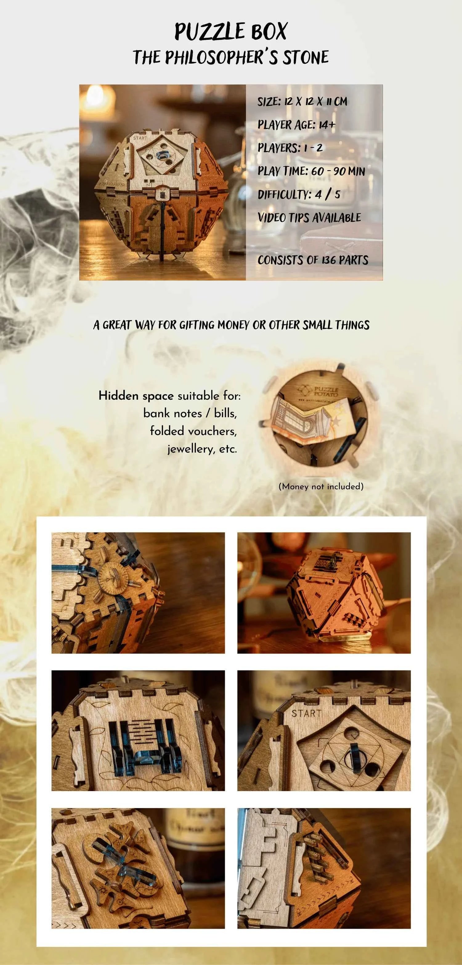 Iegūsti šo mīklu kastīti, lai atklātu Nikolasa Flamela un Filozofu akmens noslēpumus.