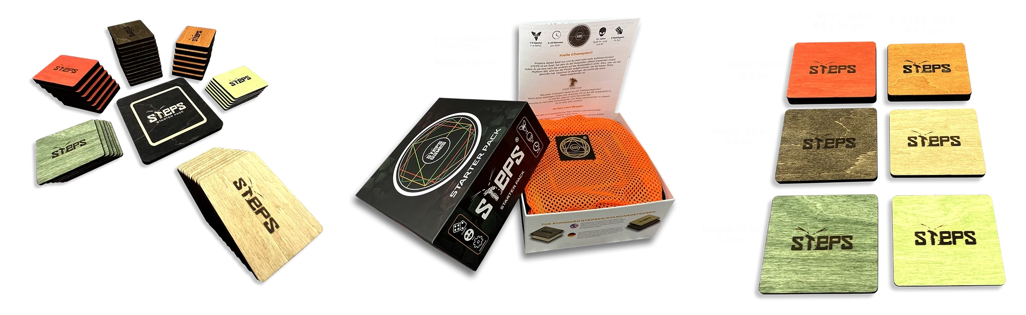 STEPS to super zabawna i wymagająca gra zręcznościowa, w której musisz pozbyć się drewnianych płytek (stopni), rzucając je jeden po drugim na pole gry! Adrenalina, intensywne emocje, dobry nastrój i „zagrajmy jeszcze raz” – to wszystko czeka na Ciebie w tej grze!
